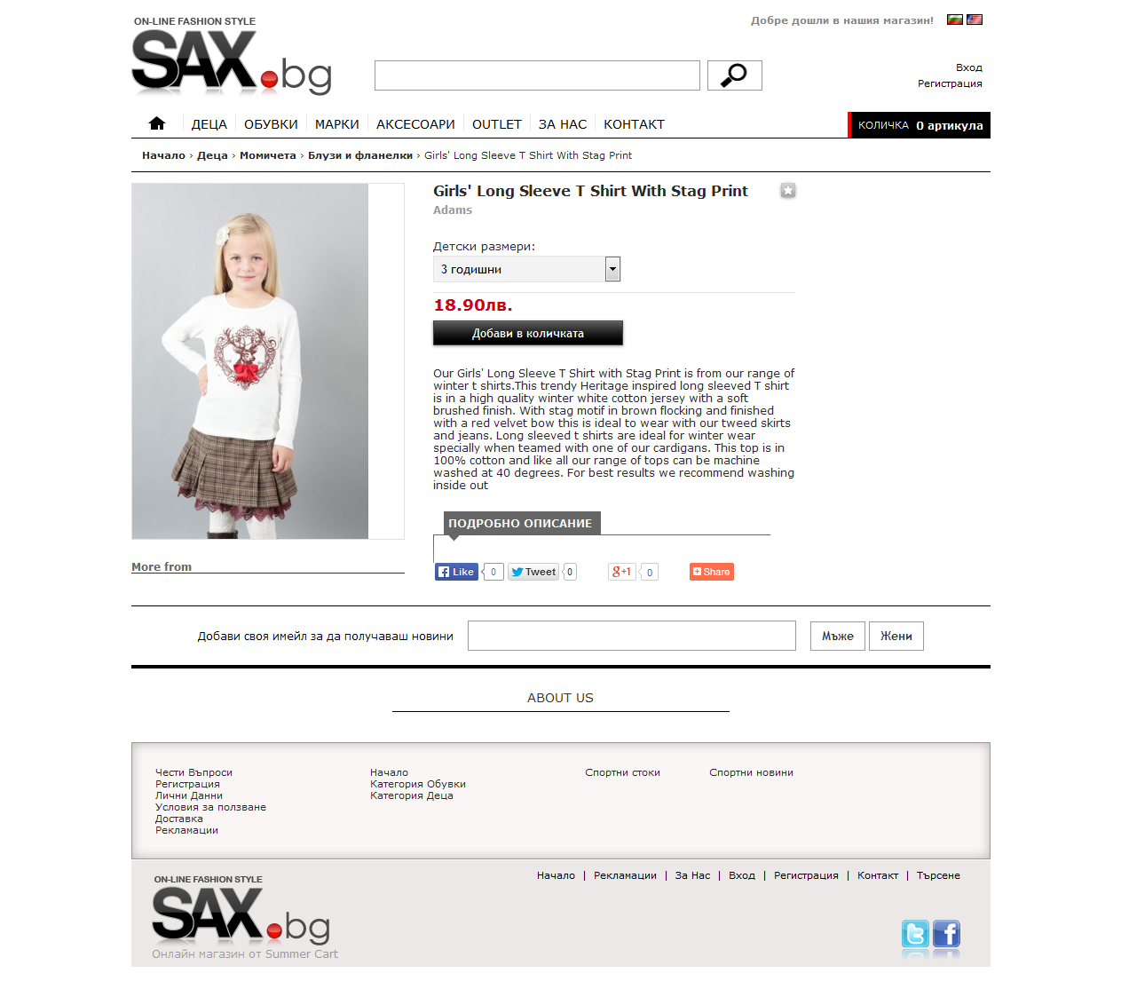The transformation began from a store for fashion clothing, it went through a much larger and wide range of products including not only fashionable clothes, but also shoes and accessories, to end as a shop for a stylish children's clothing for the time being. Strange, you think? Not for us, because we know, that Summer Cart is a flexible platform and no one can stop you to switch from one business to another, without much of an effort.